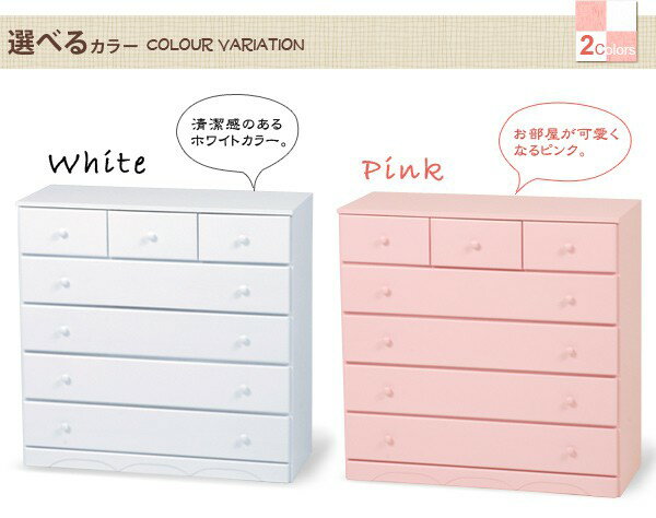 お買い物ガイド ピンク&ホワイトの木製チェスト。