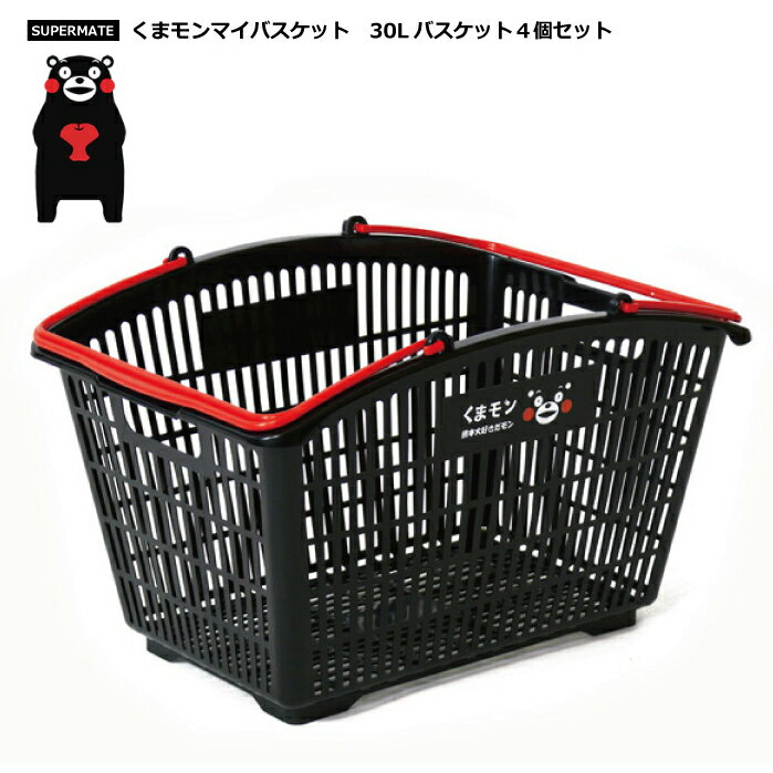 くまモングッズ 買い物カゴ くまモンマイバスケット30L 4個セット | 買い物かご マイバスケット スーパー バスケット 業務用 ショッピングバスケット おしゃれ かご プラスチック レジカゴ ショッピング マーケットバスケット キャラクター レジかご カゴ アウトドア
