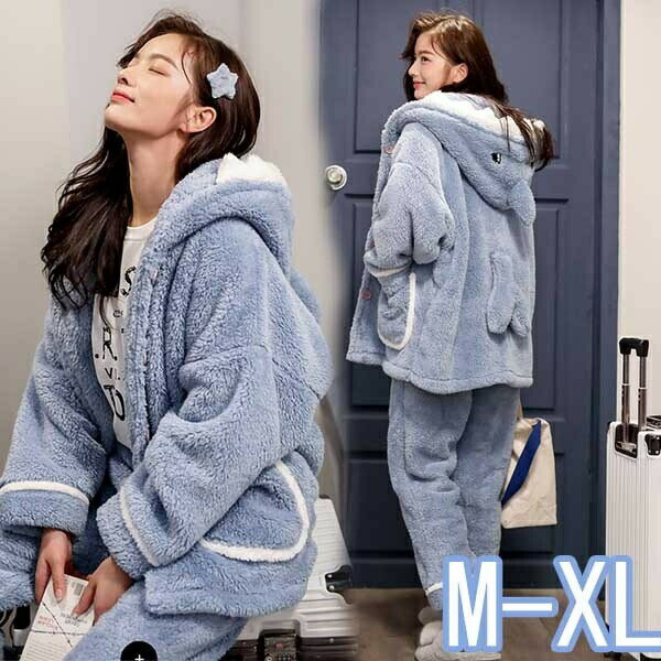ルームウェア パジャマ レディース 冬 もこもこ パジャマ レディース 秋冬 ふわもこ パジャマ フランネル 長袖パジャマ 厚手 上下セット 暖かい 部屋着 もこもこ ルームウェア 寝巻き 可愛い ルームウェア 前開き 冬着 送料無料