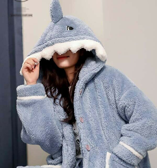 【期間限定!マスクプレゼント中】ルームウェア 寝巻き 寝間着 サメ柄 かわいい 萌え 暖かい ズボン付き 小柄 パジャマ 着心地よい レディース ゆったり 気持ちいい 癒し感 長袖パジャマ お揃い 前開き サンゴベルベット 冬 女の子 おしゃれ