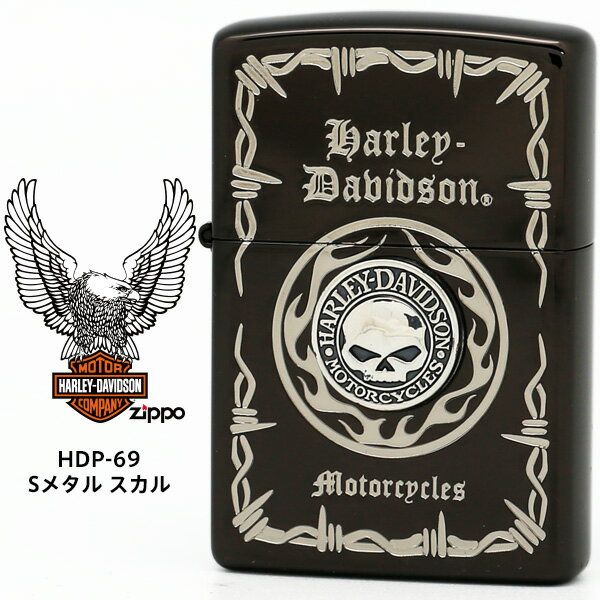 Zippo ハーレー ダビッドソン ジッポー ZIPPO Harley-Davidson HDP-69 Sメタル スカル ブラックイオン ニッケル エッチング シルバーイブシメタル ライター 【お取り寄せ】【02P03Dec16】【RCP】