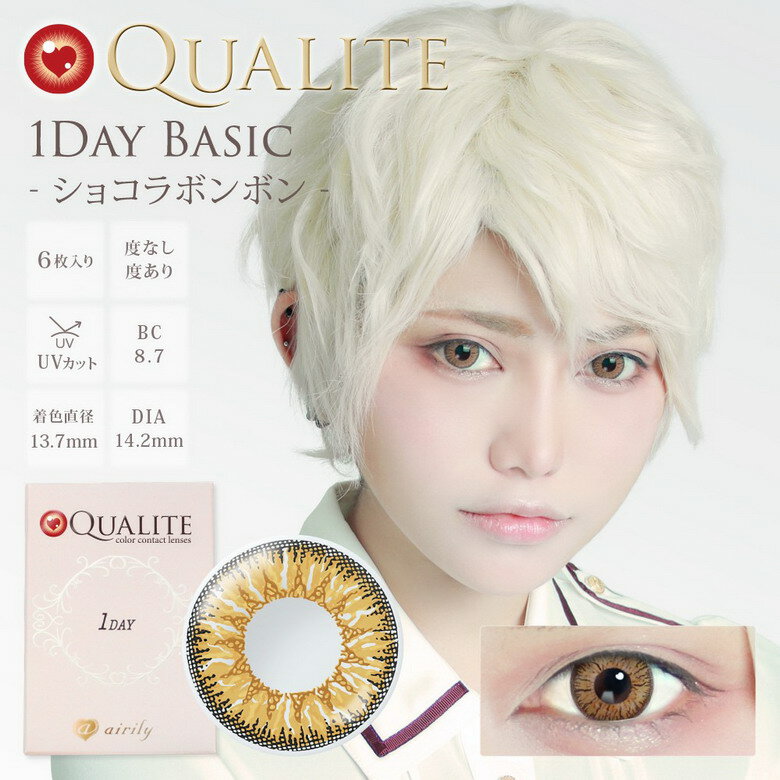 【ヘルシ価格 】カラコン カラーコンタクト QUALITE クオリテ UV ショコラボンボン Q034 1day 1箱6枚 度あり 度なし