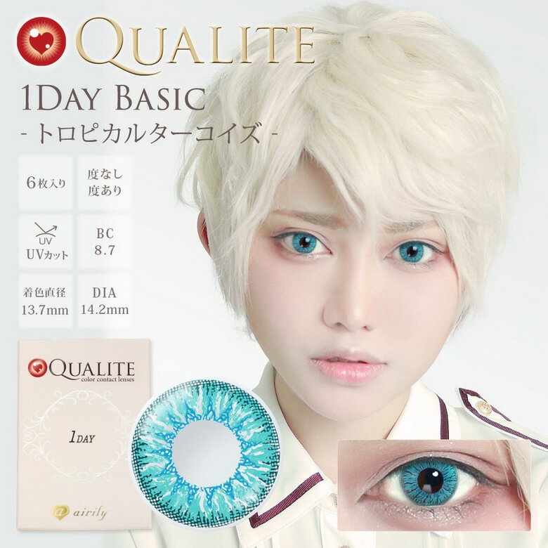 【ヘルシ価格 】カラコン カラーコンタクト QUALITE クオリテ UV トロピカルターコイズ Q045 1day 1箱6枚 度あり 度なし