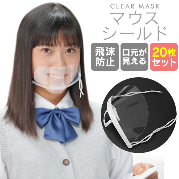 【送料無料】マウスシールド 20枚セット 透明タイプ 男女兼用 クリア マスクシールド フェイスシールド 口元 洗える 繰り返し利用可能 マスク マウスカバーガード 透明マスク 透明シールド 保護シールド 結婚式 飲食店 接客 美容 業務用 調理用 送料無料