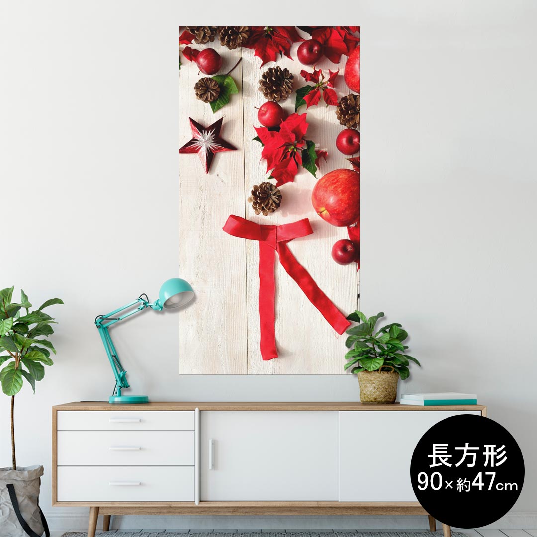 ポスター ウォールステッカー 長方形 シール式ステッカー 飾り 90×47cm Lsize 長方形 壁 インテリア おしゃれ 剥がせる wall sticker poster 005228 クリスマス リボン りんご