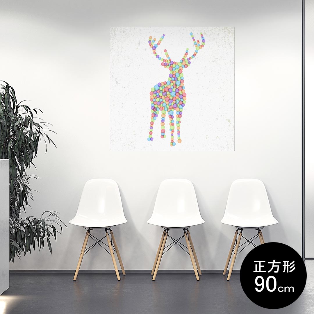 ポスター ウォールステッカー シール式ステッカー 飾り 90×90cm Lsize 正方形 壁 インテリア おしゃれ 剥がせる wall sticker poster 008729 クリスマス トナカイ カラフル
